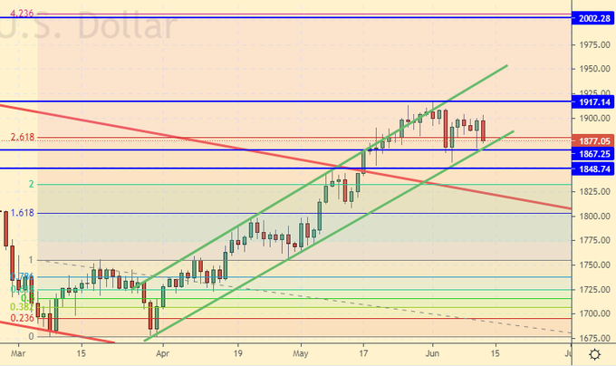 Сценарий падения: ничего не изменилось. Пока мы выше 1850, шорты рассматривать не будем. Не исключена высокая волатильность в среду.