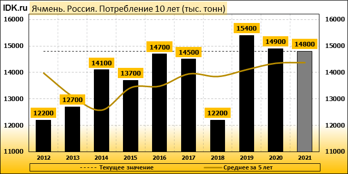 Потребление: показатель не изменился и составляет 14800 тысяч тонн.