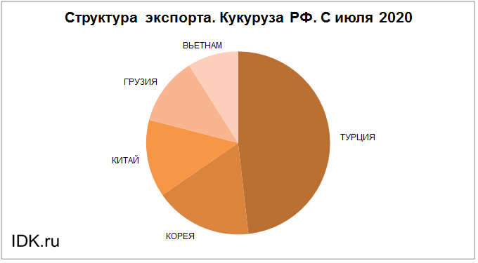 Объем поставок кукурузы на экспорт за период с июля 2020 года по апрель 2021 года в Турцию составил 923.38 тыс. тонн, что на 95.95 тыс. тонн больше объема поставок в данную страну в прошлом сезоне на тот же отчетный месяц.