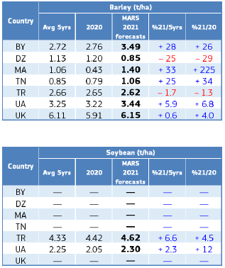 Близкие к редним температуры и частые осадки создали благоприятные условия для посева и раннего развития яровых культур. Эти условия также способствовали формированию урожайности озимых культур. MARS сохраняет позитивные ожидания по урожайности.