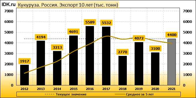 Экспорт: оценивается в 4400 тысяч тонн. За месяц показатель вырос на 7.32 процента.