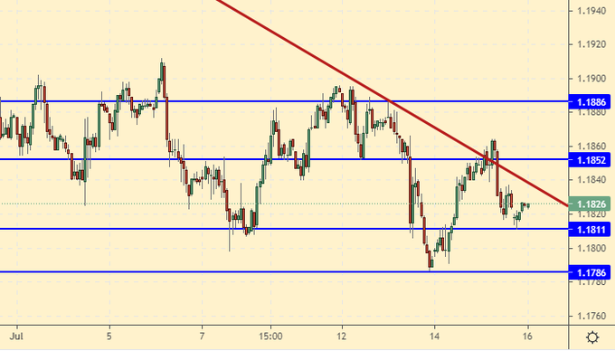 Продажа: нет. Кто в позиции от 1.1880, держите стоп на 1.1860. Цель: 1.1536.