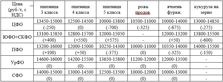 На текущей неделе в европейской части страны цены на зерновые культуры менялись разнонаправленно. При этом на Урале и в Сибири наблюдалась определенная стабилизация стоимости зерна.