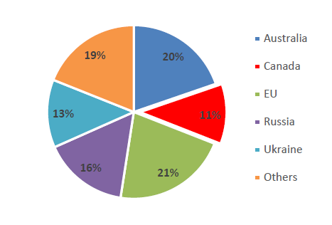 Рисунок 2. Доли рынков экспорта австралийского ячменя