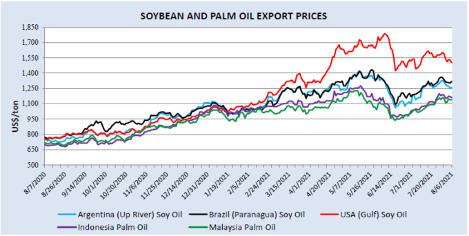 Экспортные цены на соевое и пальмовое масло в июле 2021 г.