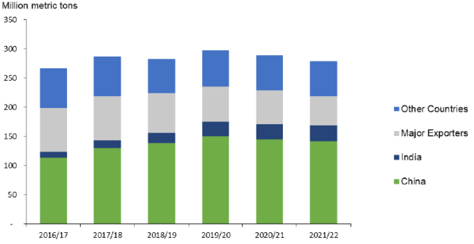 Импорт в 2021/22 году сокращен для многих стран, при этом большая часть изменений отражает общую картину сокращения глобальных запасов и ожидания ограничения спроса из-за повышения экспортных цен. Прогнозы для некоторых стран также снижены из-за ожиданий более медленного роста спроса после сокращения импорта в 2020/21 году.