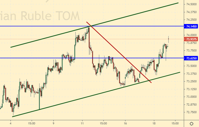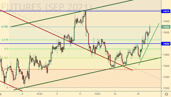 Покупка: сейчас и при падении к 73.70. Стоп: 73.40. Цель: 75.00.