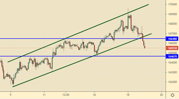 Покупка: при падении к 165000. Стоп: 163900. Цель: 175000. Кто вошел от 165000 и 166000, держите стоп на 163900. Цель: 175000.