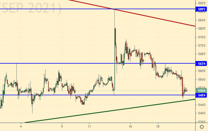 Пшеница (сентябрьский контракт, CME Group, исполнение 14.09.2021)