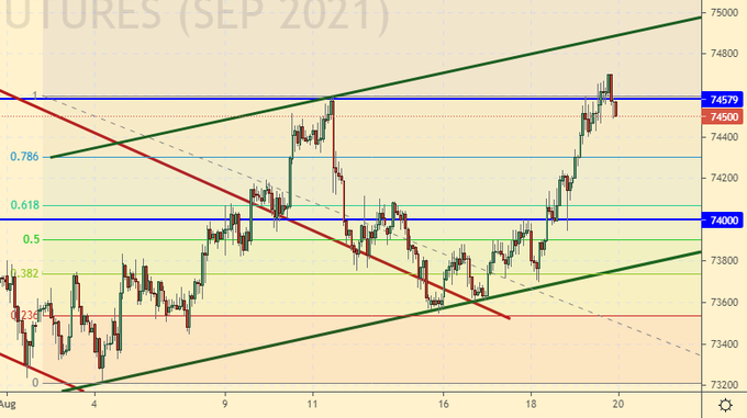 Покупка: нет. Кто в позиции от 74200, перенесите стоп на 73900. Цель: 75000.