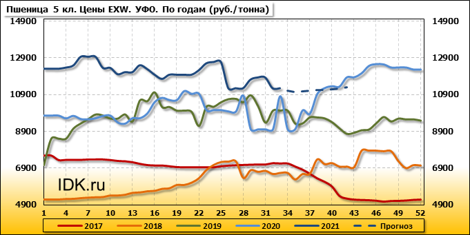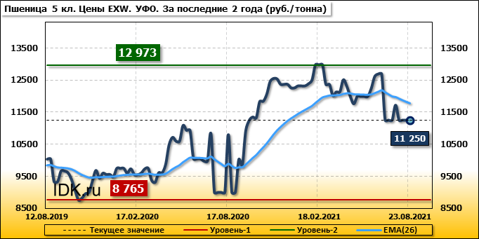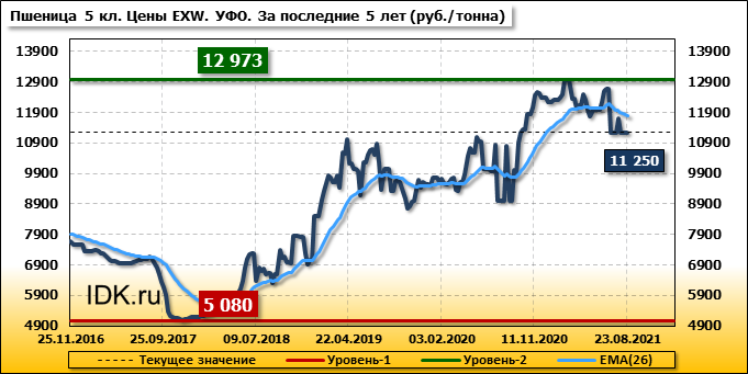 Цены на пшеницу 5-го класса не изменились и составляют 11250 рублей за тонну.