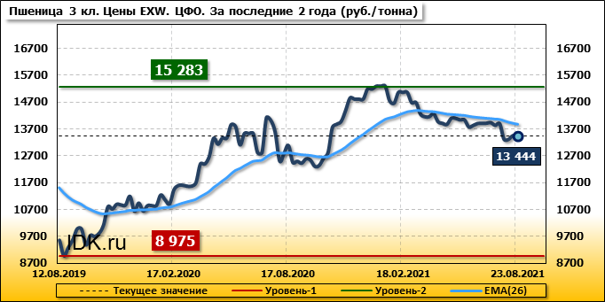 За прошедшую неделю в Центральном федеральном округе внутренние цены на пшеницу 3 класса выросли на 140 руб./т. и на данный момент составляют 13444 рубля за тонну.