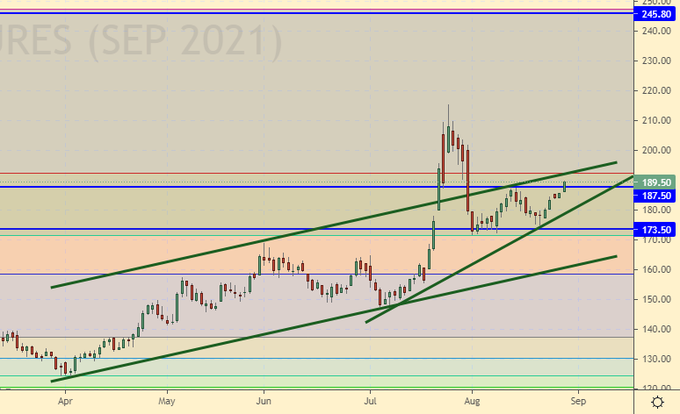 Покупка: нет. Кто в позиции от 190.0, 180.0 и 170.0, перенесите стоп на 173.00. Цель: 245.00.