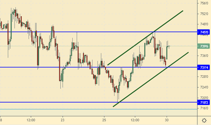 Рынок склоняется к продолжению роста, что необычно для данного времени года. Быки могут развить наступление если котировкам удастся закрепиться выше 750.0.