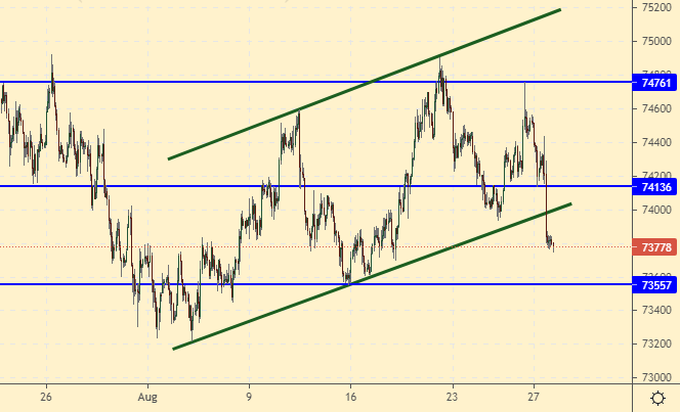 Продажа: при подъеме к 73.70. Стоп: 74.10. Цель: 68.00?!