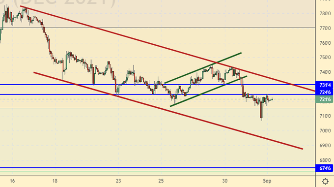 Пшеница (сентябрьский контракт, CME Group, исполнение 14.09.2021)