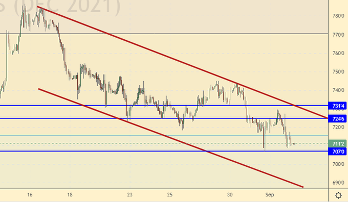 Пшеница (сентябрьский контракт, CME Group, исполнение 14.09.2021)