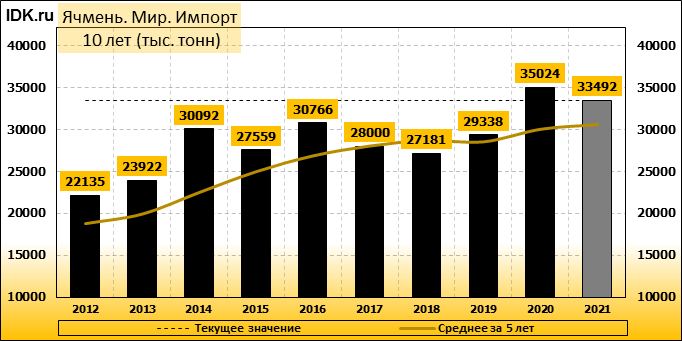 Импорт: составит 33492 тысячи тонн. Значение по прошествии месяца поднялось на 1.27 процента.