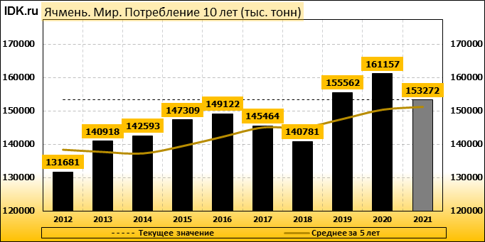 Потребление: показатель пересмотрен в сторону понижения до 153272 тысяч тонн.