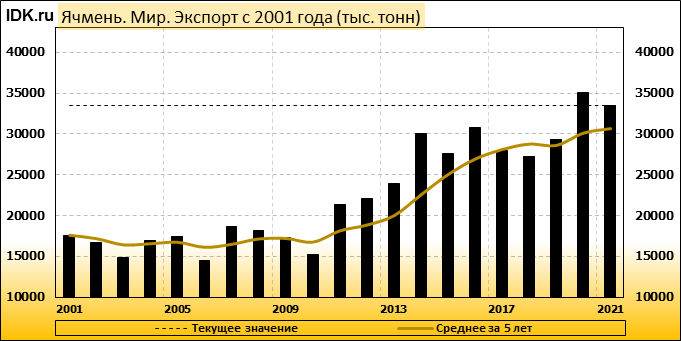 Экспорт: оценивается в 33492 тысячи тонн. За месяц показатель вырос на 1.27 процента.