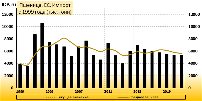 Импорт: составит 5400 тысяч тонн. Значение по прошествии месяца не изменилось.
