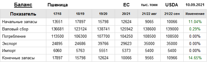 Смотрите также баланс по пшенице на 12 сентября 2021 по России