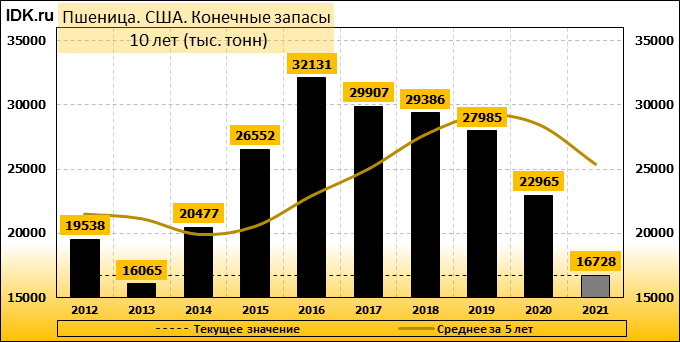 Конечные запасы: составят 16728 тысяч тонн. Оценка с последнего отчета снизилась на -1.91 процента.