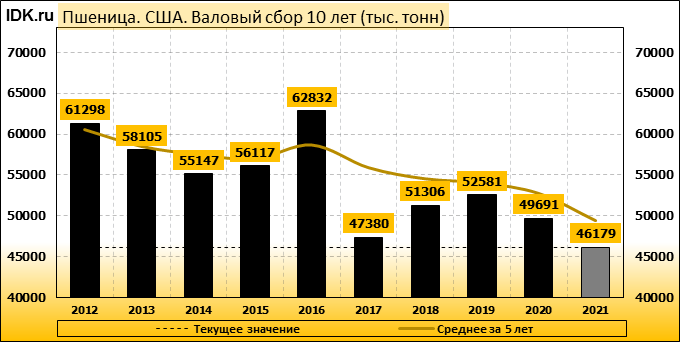 Валовый сбор: оценка не изменилась и составляет 46179 тысяч тонн.