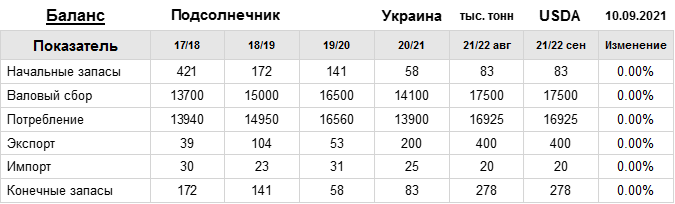 Смотрите также баланс по подсолнечнику на 15 сентября 2021 по ЕС