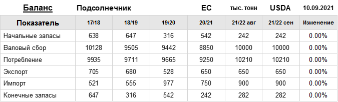 Смотрите также баланс по подсолнечнику на 15 сентября 2021 по Украине