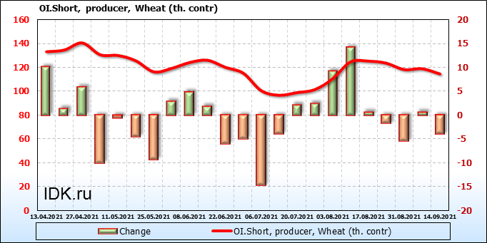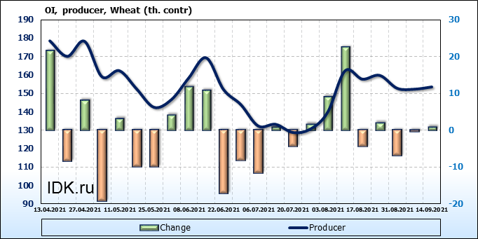 Открытый интерес производителей вырос на 1 тыс. контрактов. Объем контрактов, направленных на хеджирование, составляет 153 450 штук. Деньги производителей в течение прошлой недели приходили на рынок поддерживая тенденцию.