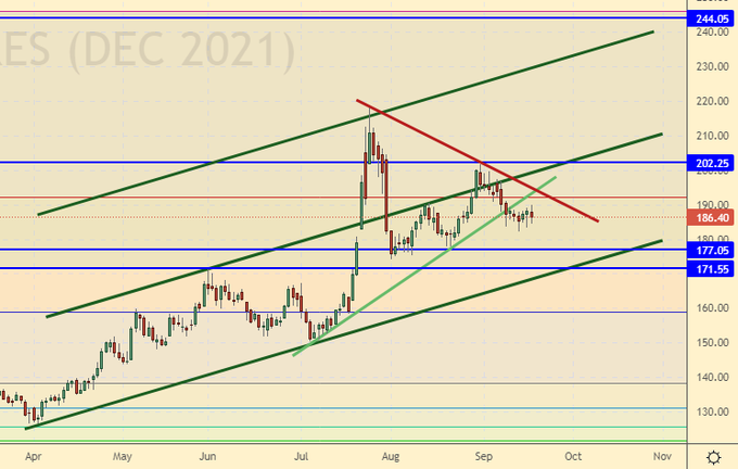 Продажа: нет. Кто в позиции от 190.00, держите стоп на 196.00. Цель: 162.00.
