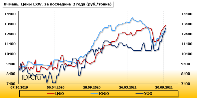 Внутренние цены на ячмень в Уральском федеральном округе выросли на 500 руб./т. и на данный момент составляют 13000 рублей за тонну.