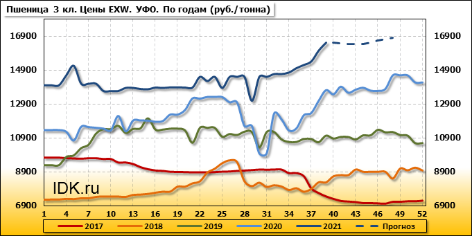 Внутренние цены на пшеницу 3 класса в Уральском федеральном округе выросли на 469 руб./т. и на данный момент составляют 16534 рубля за тонну.