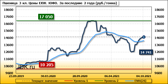 В Южном федеральном округе внутренние цены на пшеницу 3 класса выросли на 47 руб./т. и на данный момент составляют 14741 рубль за тонну.