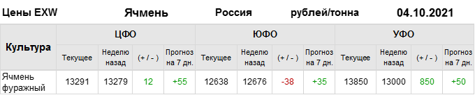 За прошедшую неделю в Центральном федеральном округе внутренние цены на ячмень выросли на 12 руб./т. и на данный момент составляют 13291 рубль за тонну.