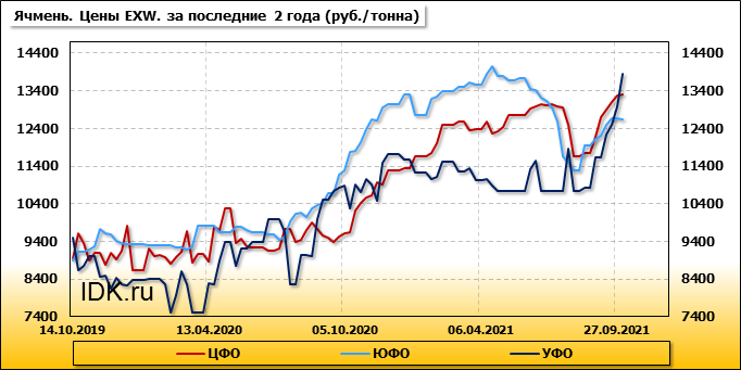 Внутренние цены на ячмень в Уральском федеральном округе выросли на 850 руб./т. и на данный момент составляют 13850 рублей за тонну.