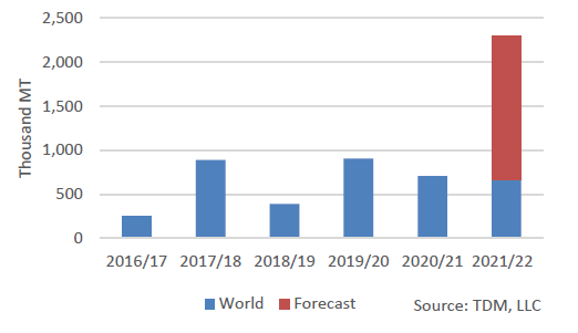 Изменения на мировом рынке для 2021/22 МГ (тыс. тонн).