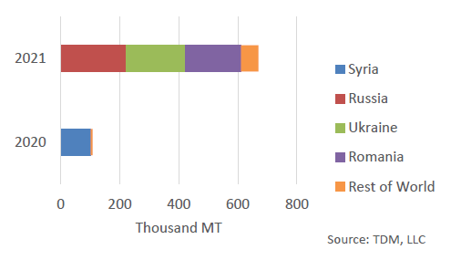 TMO активно работает на рынке ячменя, проводя тендеры и продажи для стабилизации внутренних цен на ячмень. В начале 2021/22 МГ, TMO импортировала около 670 000 тонн ячменя с июня по август с двумя тендерами, объявленными в июне и июле 2021 года, почти столько же, сколько за весь 2020/21 МГ. Основными источниками этих продаж были Россия, Украина и Румыния. TMO также объявила тендеры на поставку еще 505 000 тонн ячменя в сентябре для поставки в октябре.