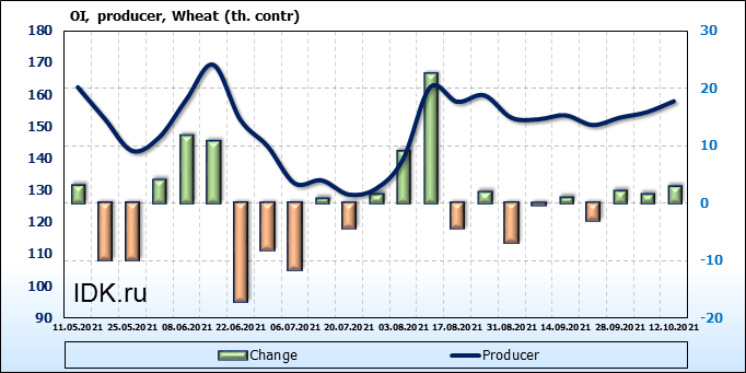 Открытый интерес производителей вырос на 3 тыс. контрактов. Объем контрактов, направленных на хеджирование, составляет 157 845 штук. Деньги производителей в течение прошлой недели приходили на рынок поддерживая тенденцию.