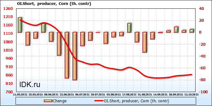 За неделю разница между длинными и короткими позициями производителей сократилась на 10.2 тыс. контрактов.