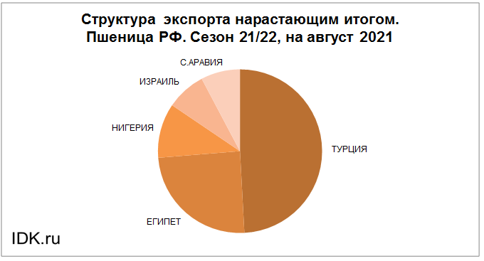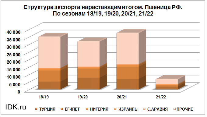 Структура экспорта пшеницы из России нарастающим итогом по сезонам