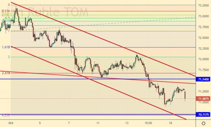 Пара вновь посмотрела в сторону 70.70. Вероятнее всего мы достигнем данной отметки, но с первого раза не сможем пройти ниже. Многое будет зависеть от индекса доллара, от того будут ли в ближайшие две недели участники рынка покупать американскую валюту. Если нет, то нас ждет продолжение укрепления рубля.