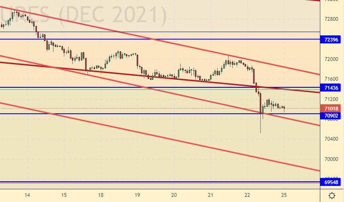 Продажа: при подходе к 70.70. Стоп: 71.10. Цель: 68.00.