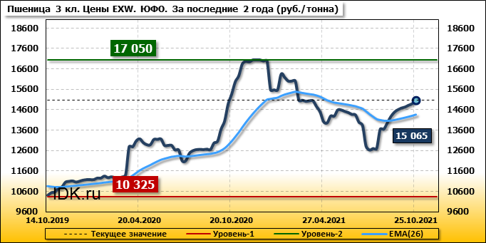 В Южном федеральном округе внутренние цены на пшеницу 3 класса выросли на 164 руб./т. и на данный момент составляют 15065 рублей за тонну.
