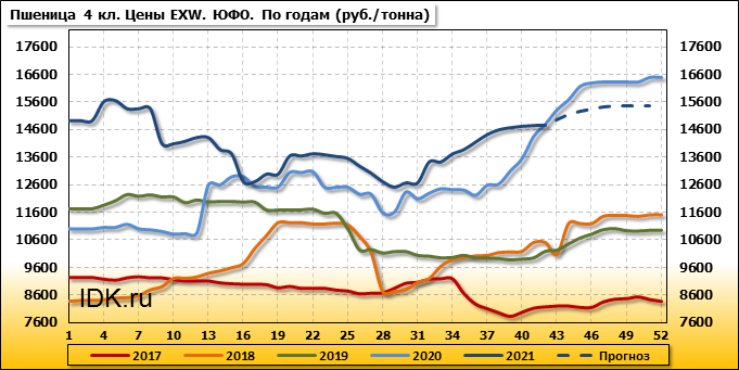 Цены на пшеницу 4-го класса поднялись на 270 руб./т. и на данный момент составляют 14418 рублей за тонну.