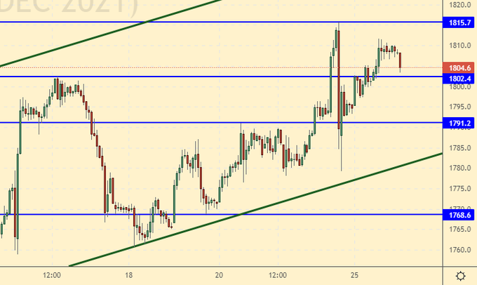 Есть ощущение, что до заседания ФРС 3-го ноября движения по золоту вверх мы не увидим. Не исключено, что нас ждет откат в район 1791. Если отката не будет и рост, пусть и в рваном режиме, будет продолжен, то это будет говорить нам о бычьем настрое рынка на ближайшие недели и высоких ожиданиях покупателей.