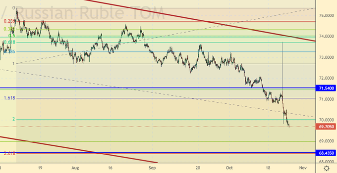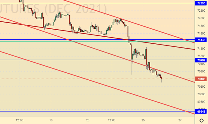 Продажа: при подходе к 70.70. Стоп: 71.10. Цель: 68.50.