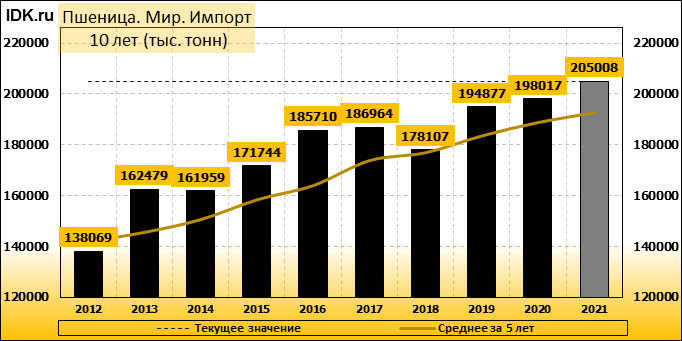 Импорт: составит 205008 тысяч тонн. Значение по прошествии месяца поднялось на 1.58 процента.