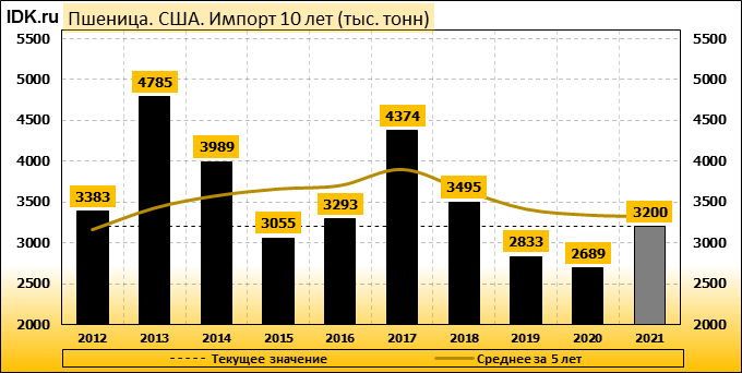 Импорт: составит 3200 тысяч тонн. Значение по прошествии месяца упало на -8.57 процента.